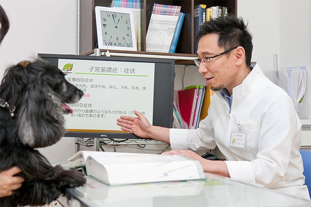 飼い主様、そしてご家族であるワンちゃん・ネコちゃん自身の不安を少しでも和らげていけるように、病気についてのことや、今後の治療方針を、丁寧にご説明いたします。